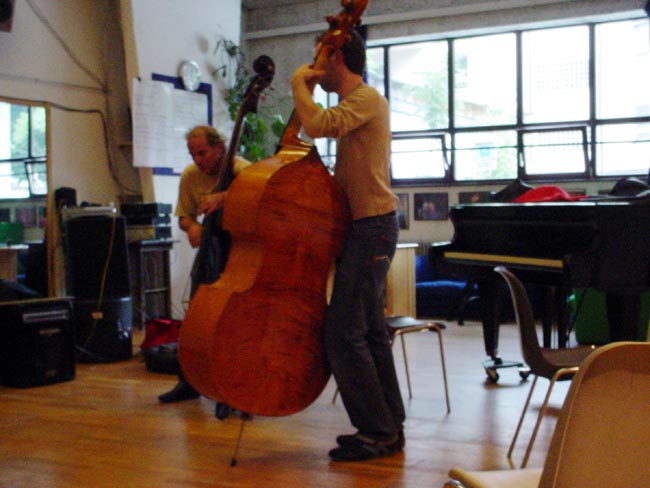 Menü Startseite Vortragende Workshops Fotoblog Konzerte JIMS Workshop für Jazz und improvisierte Musik Salzburg 18.-23. Juli 2005 Peter Herbert (A) - d-bass/leitung Kermit Driscoll (USA) - e-bass Theo Bleckmann (USA) - vocals Ingrid Jensen (CAN) - trumpet George Garzone (USA) - saxophone Huw Warren (UK) - piano Nguyên Lê (F) - guitar Jim Black (USA) - drums Weblog zum Jazzseminar von Andrea Eisenmann 18. Juli :: 19. Juli :: 20. Juli :: 21. Juli :: 22. Juli :: 23. Juli 19. Juli 2005 Instrumental Class Jim Black Instrumental Class Peter Herbert Brunch im Jugendgästehaus Ingrid Jensen und Theo Bleckmann Das Organisationsteam: Robert Kainar und Andrea Eisenmann Jazzit Konzert Jazzit Session der StudentInnen mit Peter Herbert Jazzit - After Concert